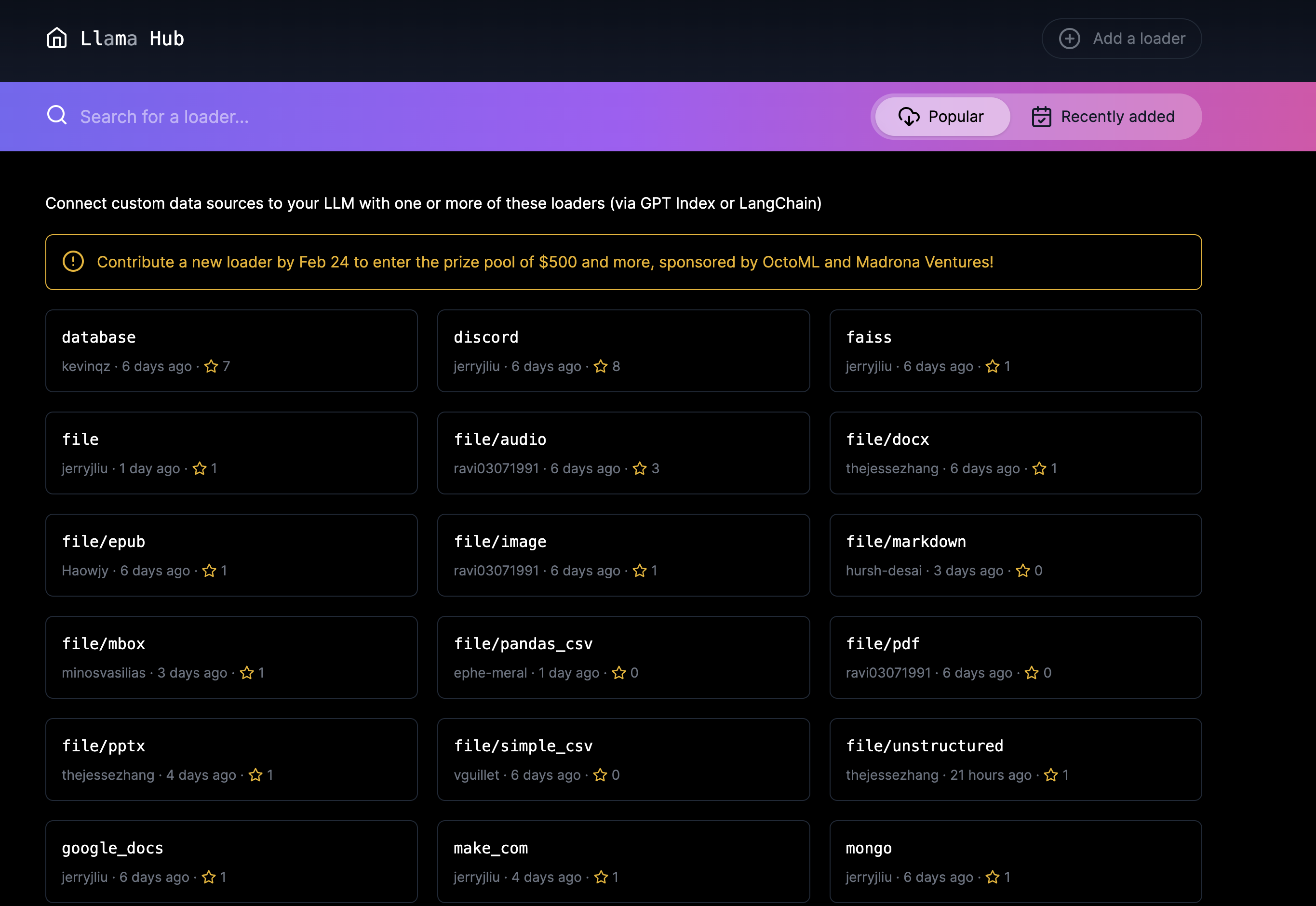Section titled “LlamaHub”Our data connectors are offered through LlamaHub 🦙. LlamaHub is an open-source repository containing data loaders that you can easily plug and play into any LlamaIndex application.