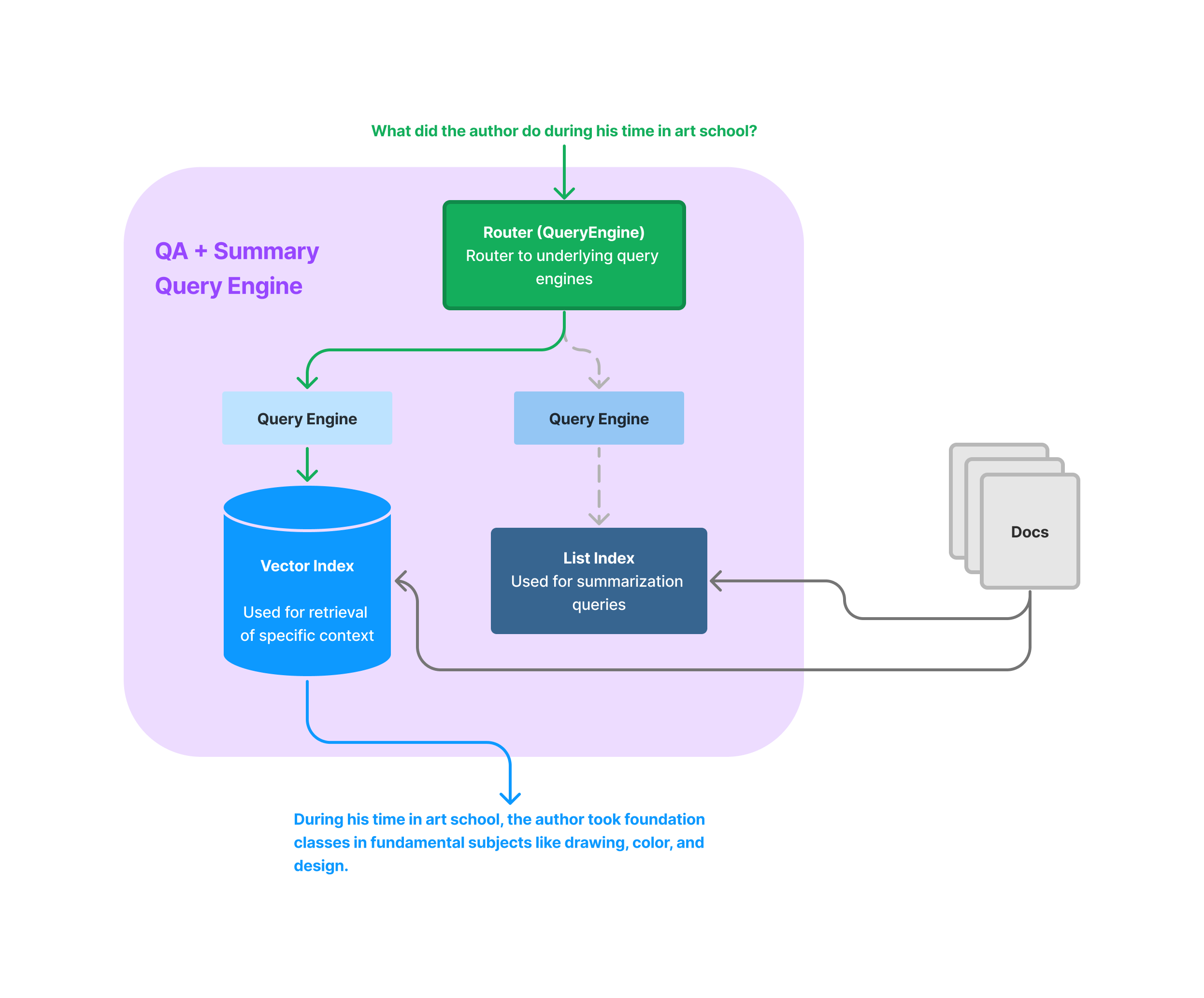 Section titled “Motivation”RAG isn’t just about question-answering about specific facts, which top-k similarity is optimized for. There can be a broad range of queries that a user might ask. Queries that are handled by naive RAG stacks include ones that ask about specific facts e.g. “Tell me about the D&I initiatives for this company in 2023” or “What did the narrator do during his time at Google”. But queries can also include summarization e.g. “Can you give me a high-level overview of this document”, or comparisons “Can you compare/contrast X and Y”. All of these use cases may require different retrieval techniques.